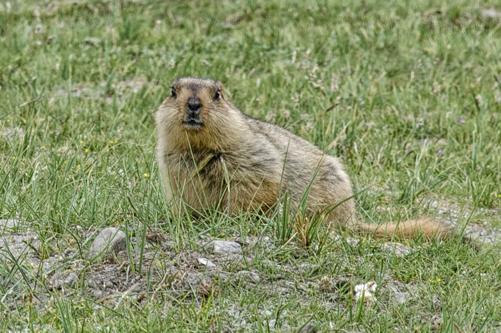 The Himalayan marmot (Marmota himalayana) is a rodent of the squirrel family found in alpine grasslands throughout the Himalayas and ...